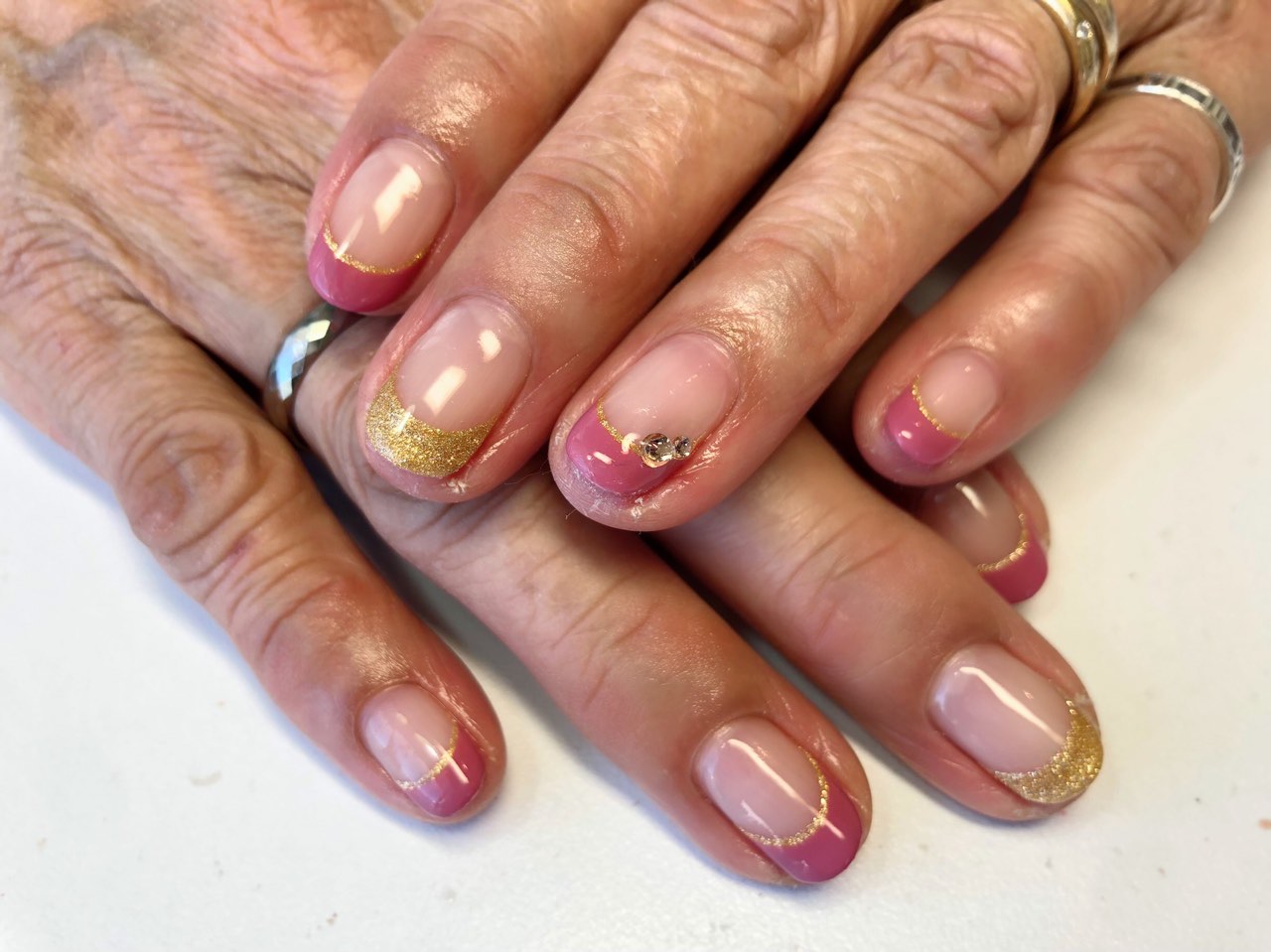 フレンチ、ラメライン、ストーン2粒 6,160.-