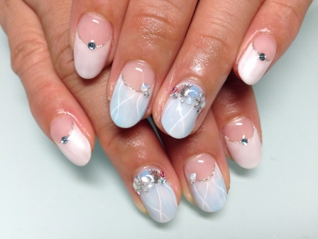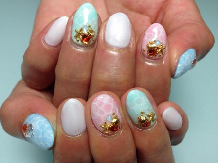 本日のお客さまネイル 2016.7.23 ワンカラー・アート6本 ¥7,350.- サンプルアートB ¥6,000.- ワンカラー・アート2本・ストーン8粒 ¥5,670.- 乗せ放題 ¥8,400.-