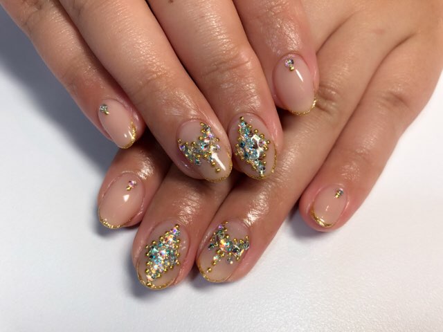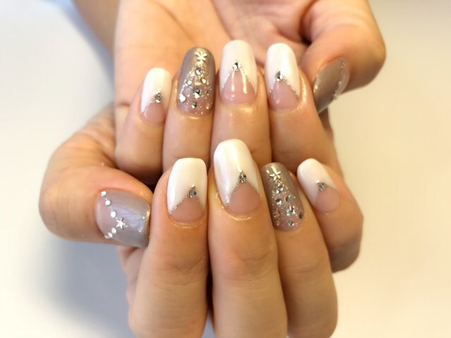フレンチ、ラメライン、アート4本、ストーン6粒 8,190.-